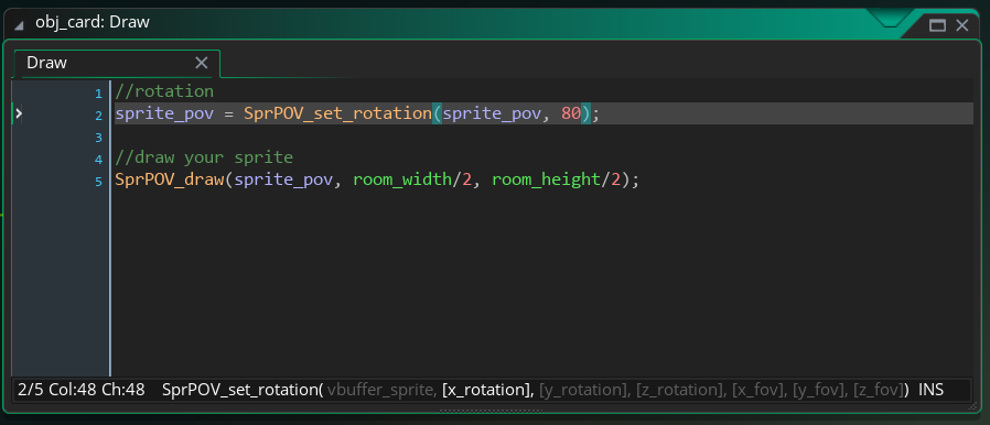 Sprite POV simulates built-in gamemaker functions to draw a 2d sprite but gives 3d projection of rotation on X and Y Axis, based on vertex buffer and matrix manipulation.